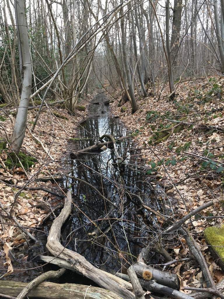 Nous avons décidé de dégager cette rigole sur les 500 m en amont qui subsistent en forêt et de continuer à réaliser un sentier de visite tout du long, comme nous l'avons fait vers l'aval, jusqu'au château de Meudon lorsque cela était possible.